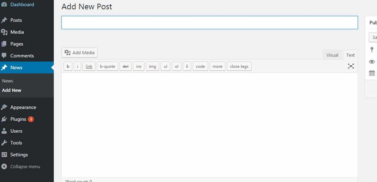 Setelah itu, Anda akan dialihkan pada halaman di mana Anda dapat menulis atau melakukan copy paste dari Microsoft Word. Di sinilah Cara membuat Post Baru di Wordpress dimulai.