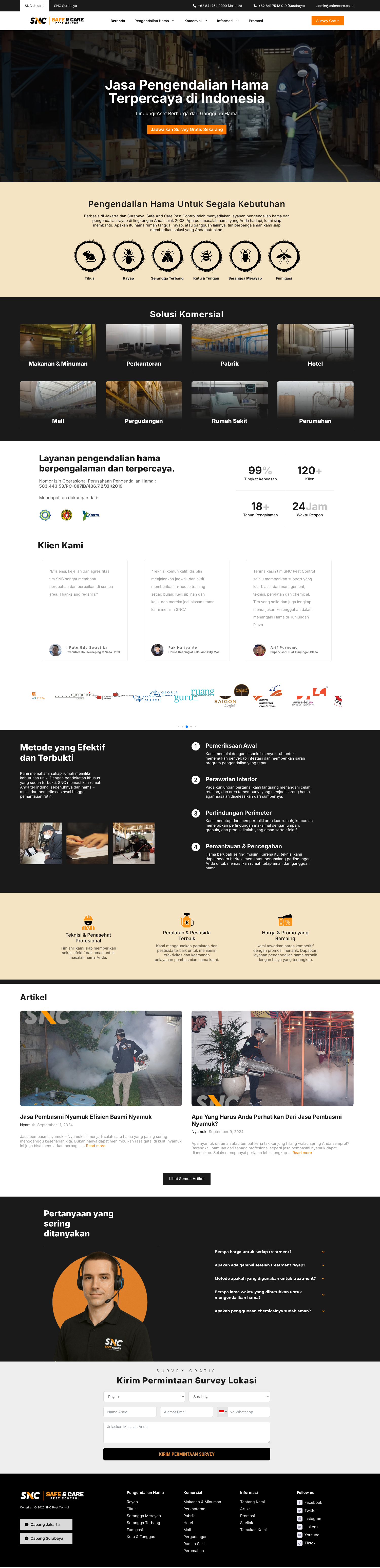 Safe & Care ingin mendominasi hasil pencarian untuk kata kunci lokal seperti “jasa basmi tikus Jakarta”, “pest control restoran”, dan “pengendalian rayap Surabaya”.
